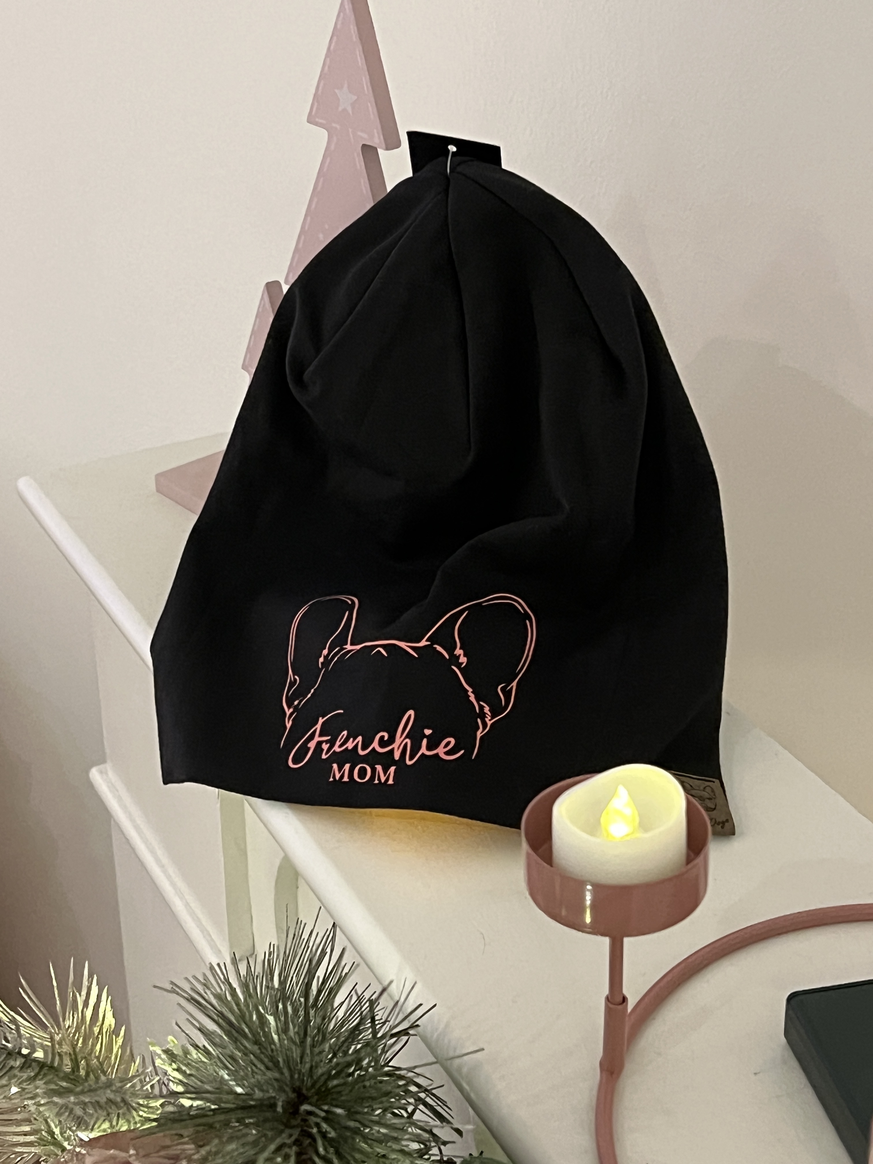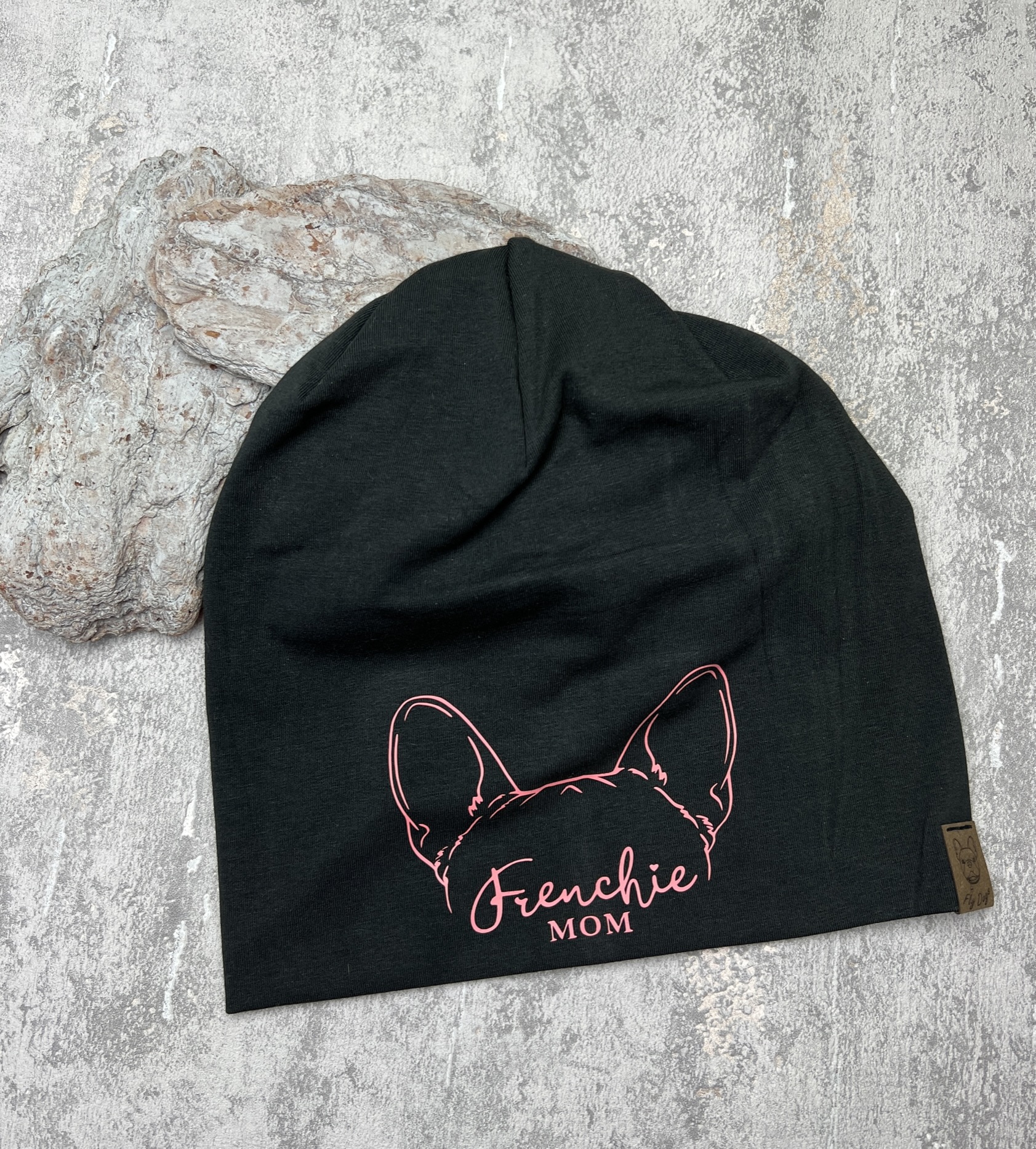 Beanie Mütze Frenchie Mom Schwarz / Altrosa